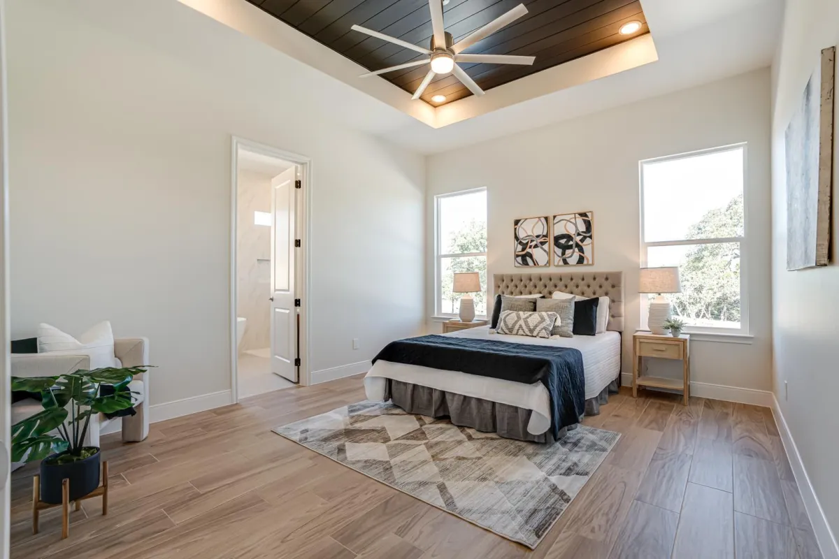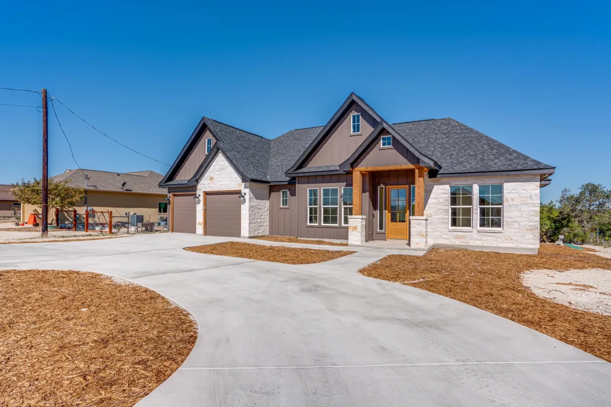 Discover the extraordinary in every detail of this newly constructed dream home, with upgrades and features that set it apart from a regular spec house - from matte black and gold finishes to tongue-and-groove ceilings. Luxuriate in the spaciousness of a four-bedroom, four-bathroom haven, where no carpet interrupts the elegance. Let your inner chef shine with high-end appliances in the kitchen complemented by gleaming quartz countertops. Outside, embrace the serenity of lakeside living on your .50-acre sanctuary, complete with tranquil lake views and ample patio space for unforgettable gatherings. Embrace unparalleled privacy with no side neighbor as you nestle into this tranquil cul-de-sac retreat. Located in the heart of Hill Country Canyon Lake, enjoy a short stroll to Canyon Lake High School and quick access to numerous boat ramps and Brooks Brothers. Completion is estimated for September. Builder added sq ft to approx. 100ft to the house adding additional bath.
